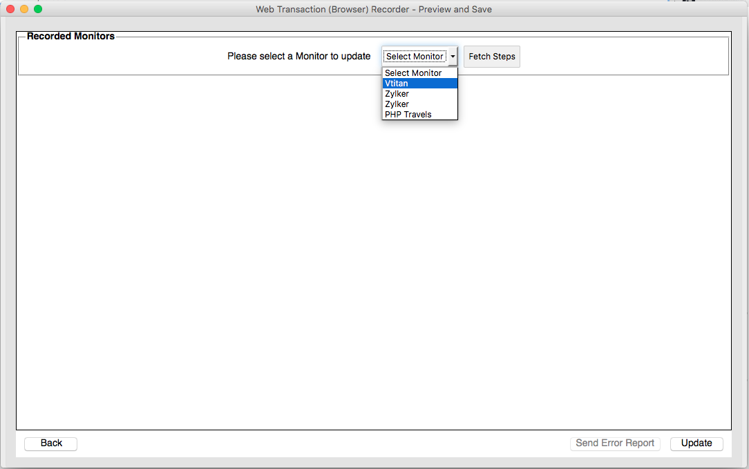 - If you wish to update an existing monitor configured in your account, then you may choose the relevant monitor from the drop down box; Click the Fetch Steps button to view the steps for the chosen monitor.