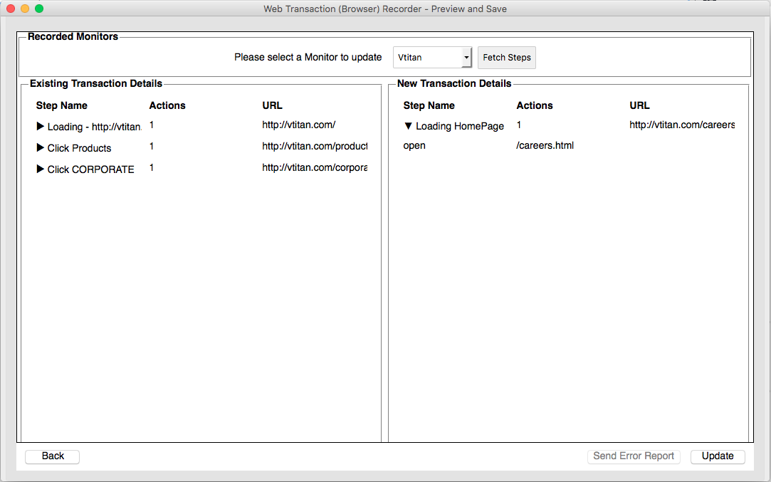 NoteThe Update Existing Monitor step will be available only when there is a pre-configured Web Transaction (Browser) - Selenium WebDriver setup in your account.
