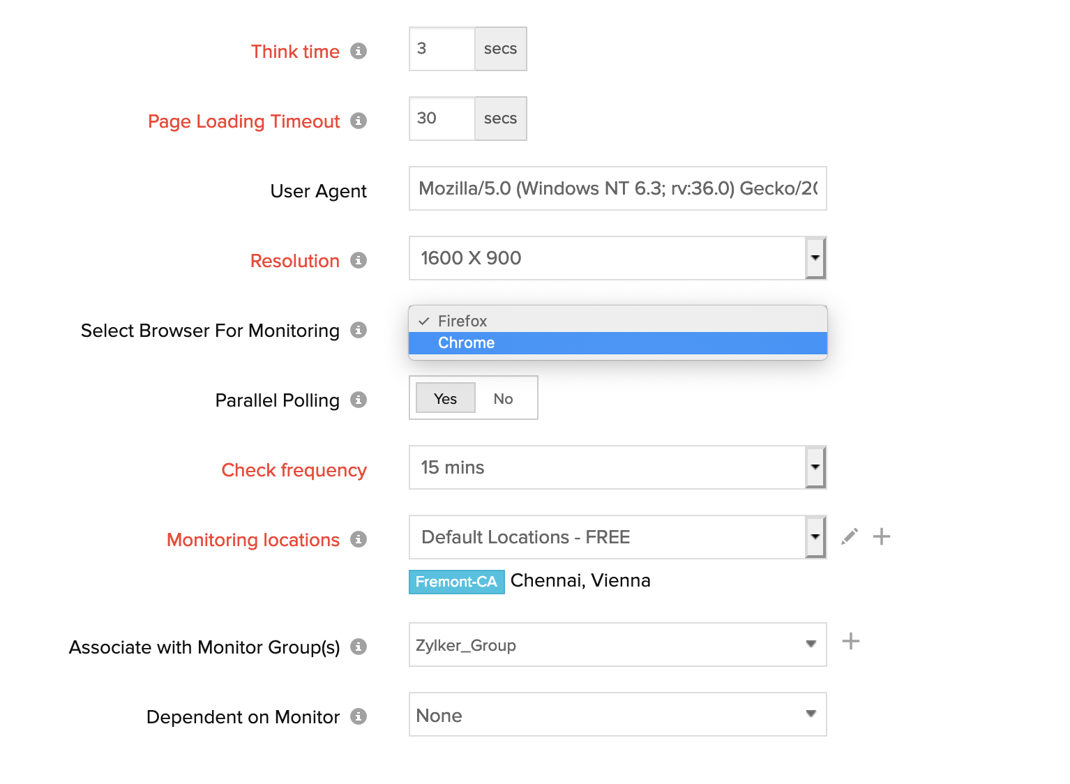 - Associate with Monitor Group: You can associate your monitor with multiple monitor groups by selecting the relevant monitor groups from the drop down list. This allows in logical grouping of your monitors.
