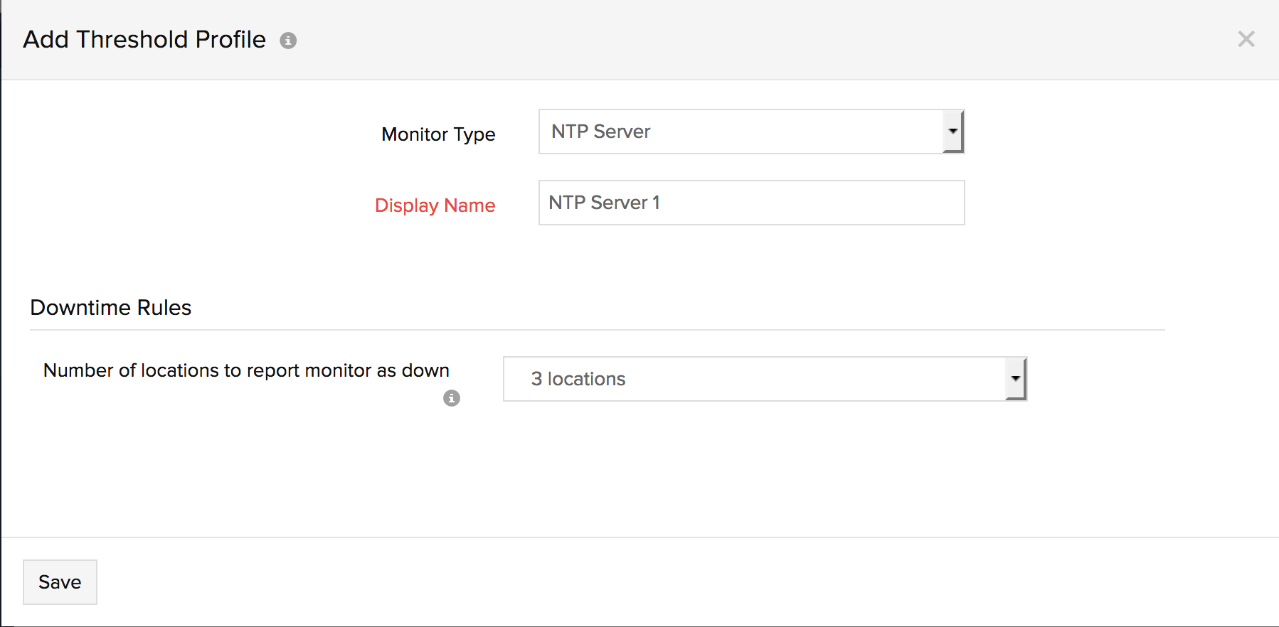 • Choose Monitor Type: Select NTP Server from the drop down list.