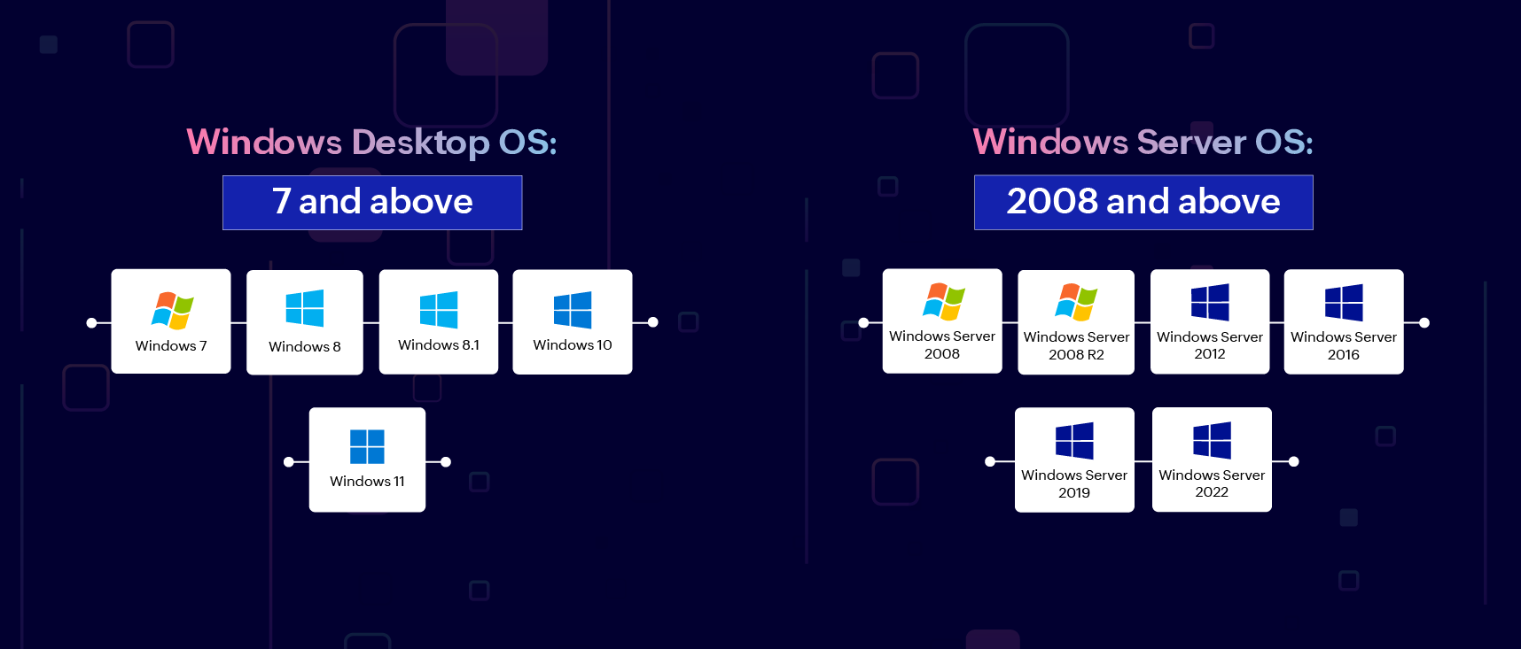 Agent software for Windows and Linux server monitoring. Install on the servers and start monitoring CPU, memory, disk, and applications like IIS, Active Directory (AD), and SQL Server.