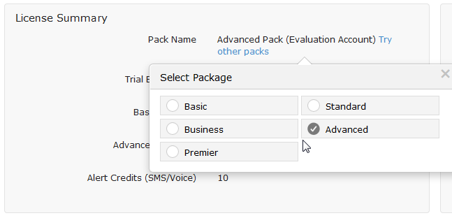 Site24x7 offers a package based pricing model for small IT teams, DevOps to large enterprises. We offer the following packs: Free, Basic, Standard, Business, Advanced, and Premier. There is a 30-days evaluation period and the subscription can be upgraded any time during this evaluation period. The packs will automatically downgrade to FREE account once the evaluation period is completed.