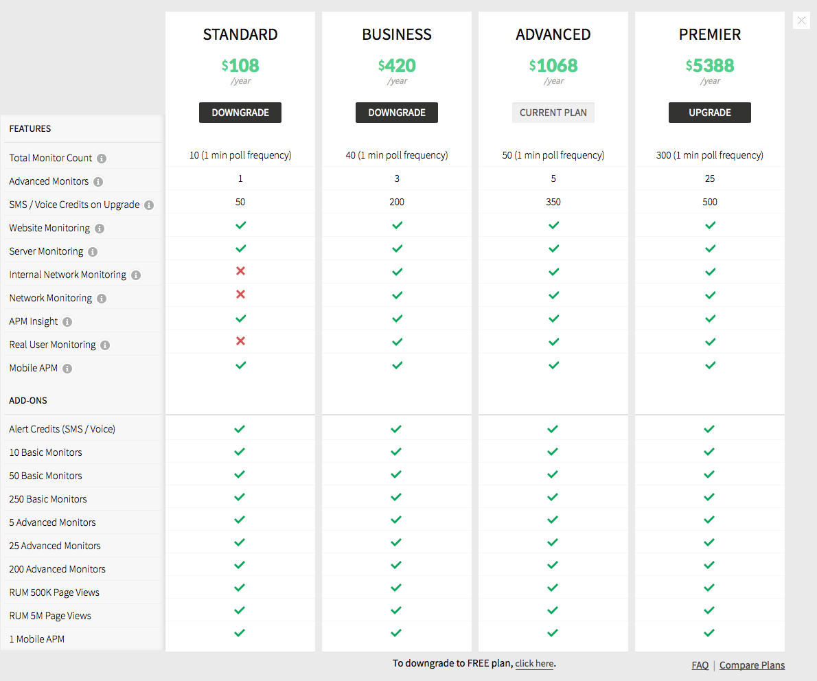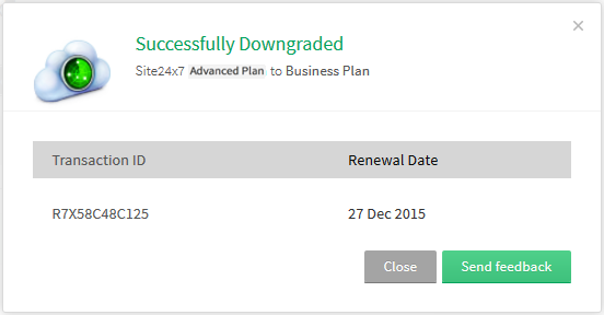 - Click the "downgrade to FREE plan" link given at the bottom of the Site24x7 subscription plan page.