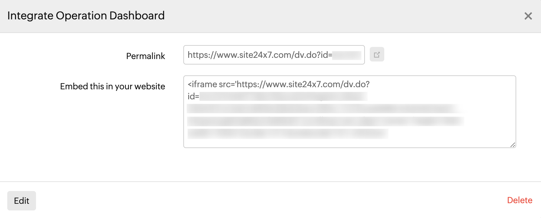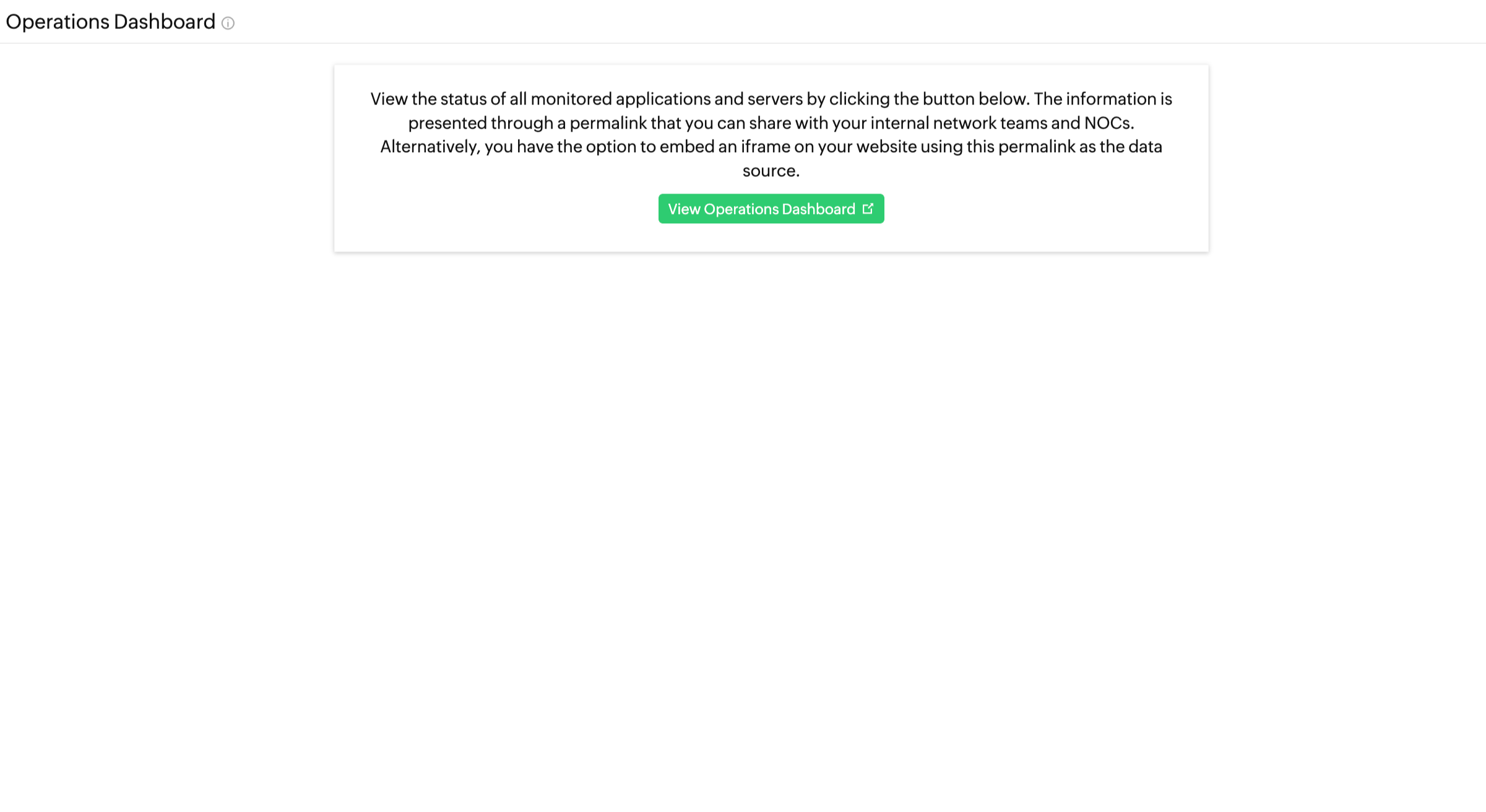 • Permalink: A default permalink is provided for the users. You can use this link to view the operations dashboard.