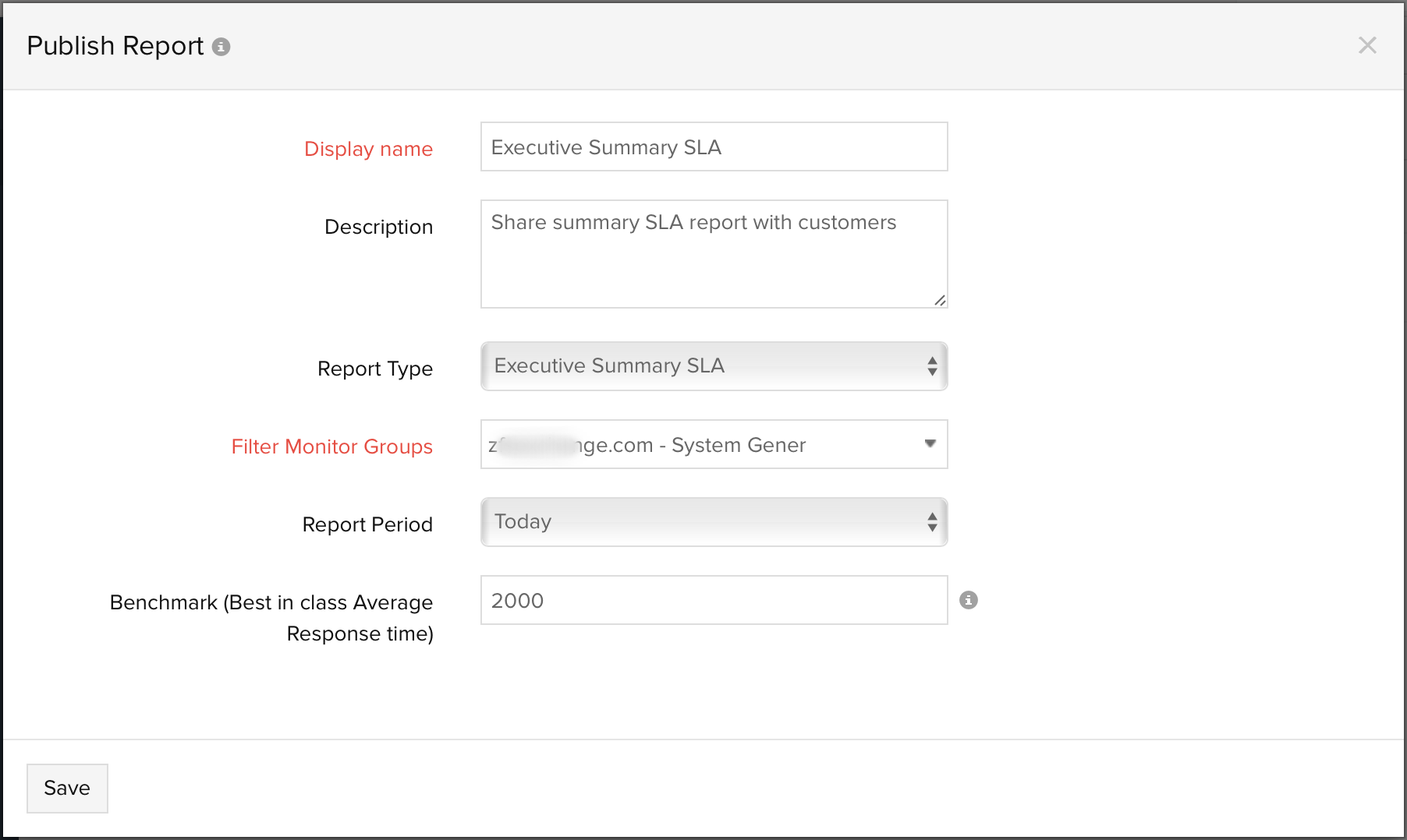 Use this option to make your reports accessible to customers without a login. You can share various reports with your customers viz., Availability Summary Report, Summary Report, Health Trend Report, Busy Hours Report, Top-N-report, Performance Report, Executive Summary SLA Report, and Step Summary Report of your monitors and monitor groups. Explore more about the monitor reports and monitor groups report.