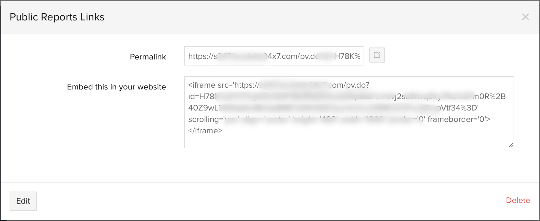 • Permalink: A default permalink is provided for the users. You can use this link to publish the reports.
