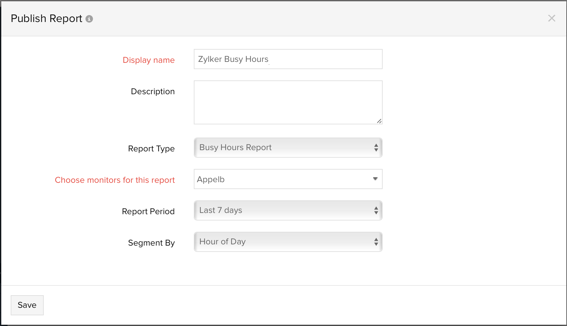 • Choose monitors for this report: Select the required monitor from the dropdown list for to make the reports public.