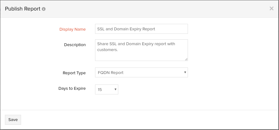 Mention the following details when SSL and Domain Expiry Report is selected: