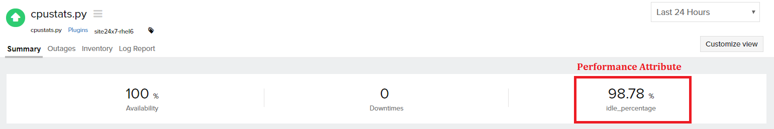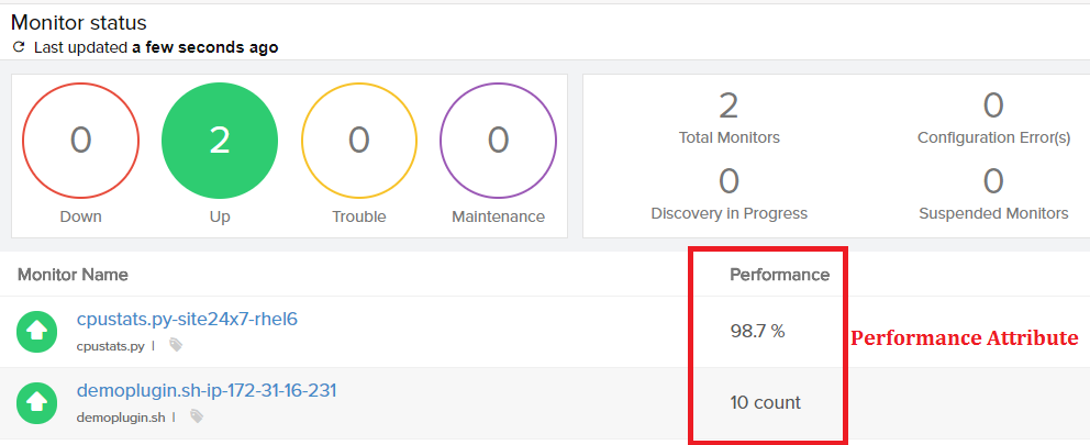 - Select the attribute to be set as Performance Attribute - The Performance attribute can be viewed in the Summary page (screenshot 1), main plugin monitor listing page (screenshot 2), and in the log report (screenshot 3).