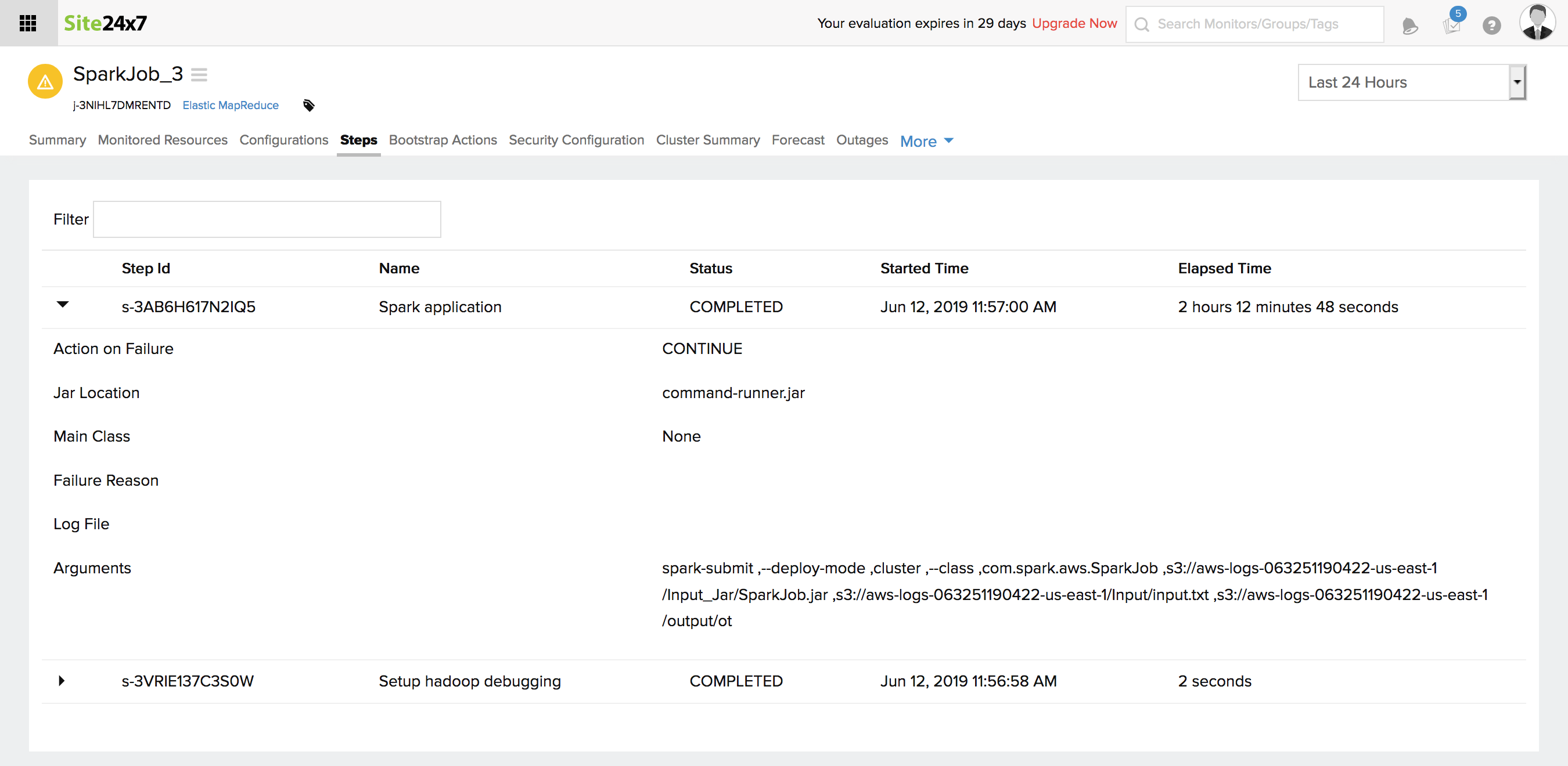 Amazon EMR is a web service that enables users to run Big Data frameworks to process large volumes of data. Site24x7 monitors EMR to ensure uninterrupted data analysis and notifies users about the status changes in the associated AWS services, such as EC2 instances in the EMR cluster.
