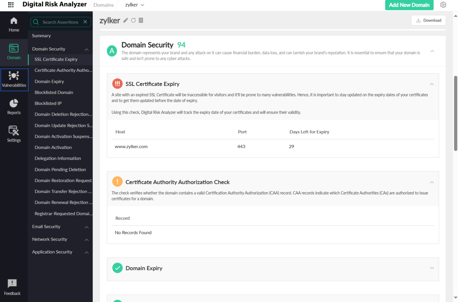 - Highlight publicly known vulnerabilities associated with your domain setup.
