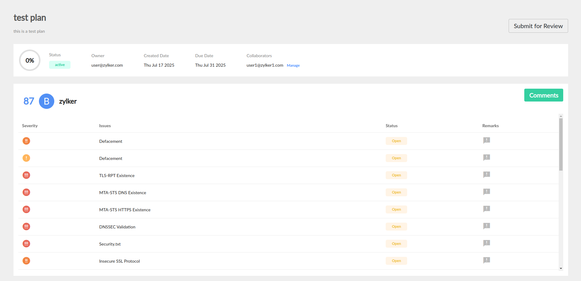 - Once the collaborators start working on the plan, they can share their suggestions, resolve issues, and communicate the updates to the team through the comments section.