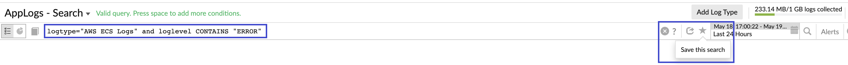 logtype="AWS ECS Logs" and loglevel CONTAINS "ERROR"