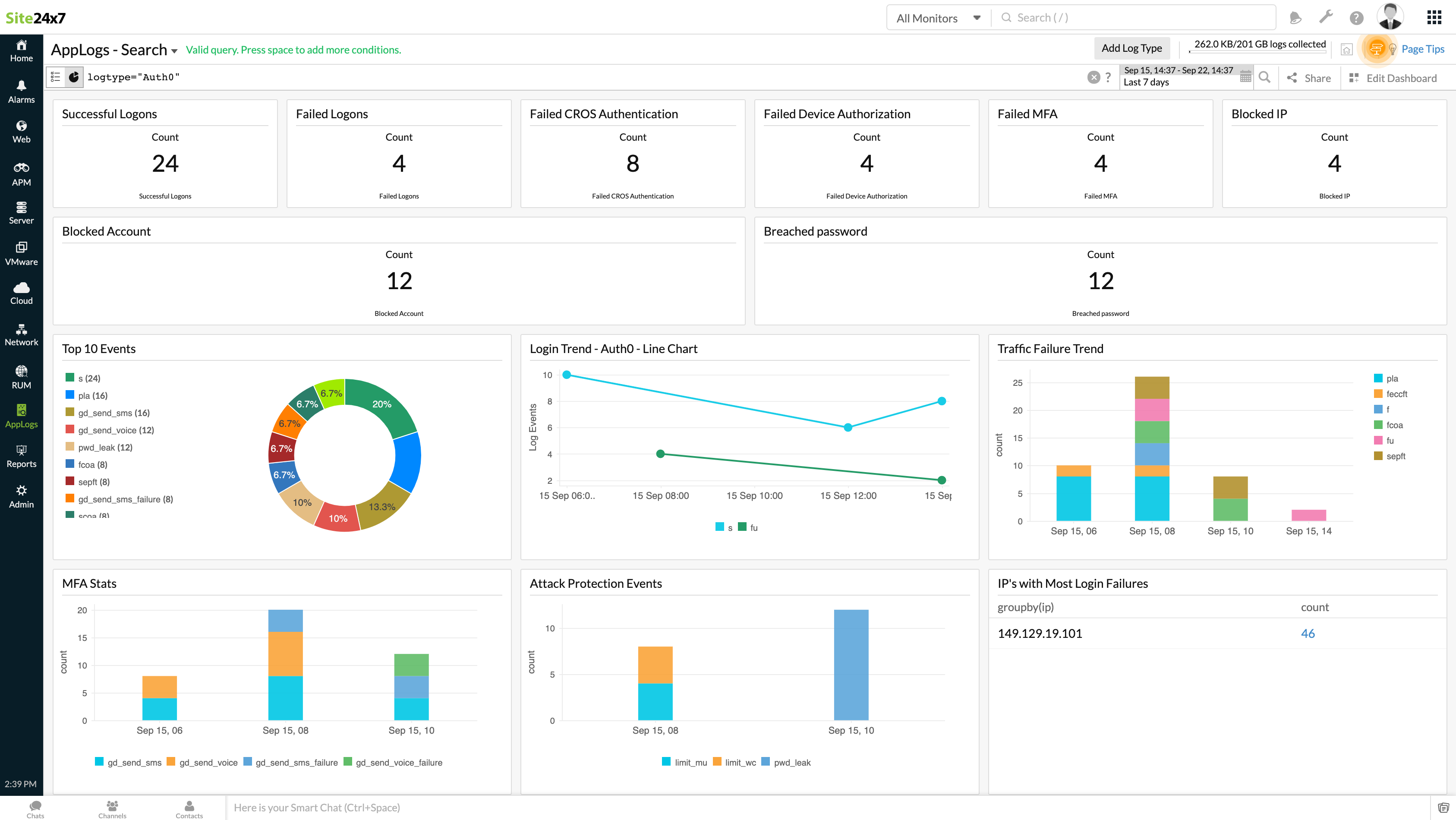 Auth0 is an authentication platform that makes identity management easy for developers and security personnel. You can forward your Auth0 log events to Site24x7 AppLogs. This would enable you to create monitoring, alerting, and analysis dashboards under one console.