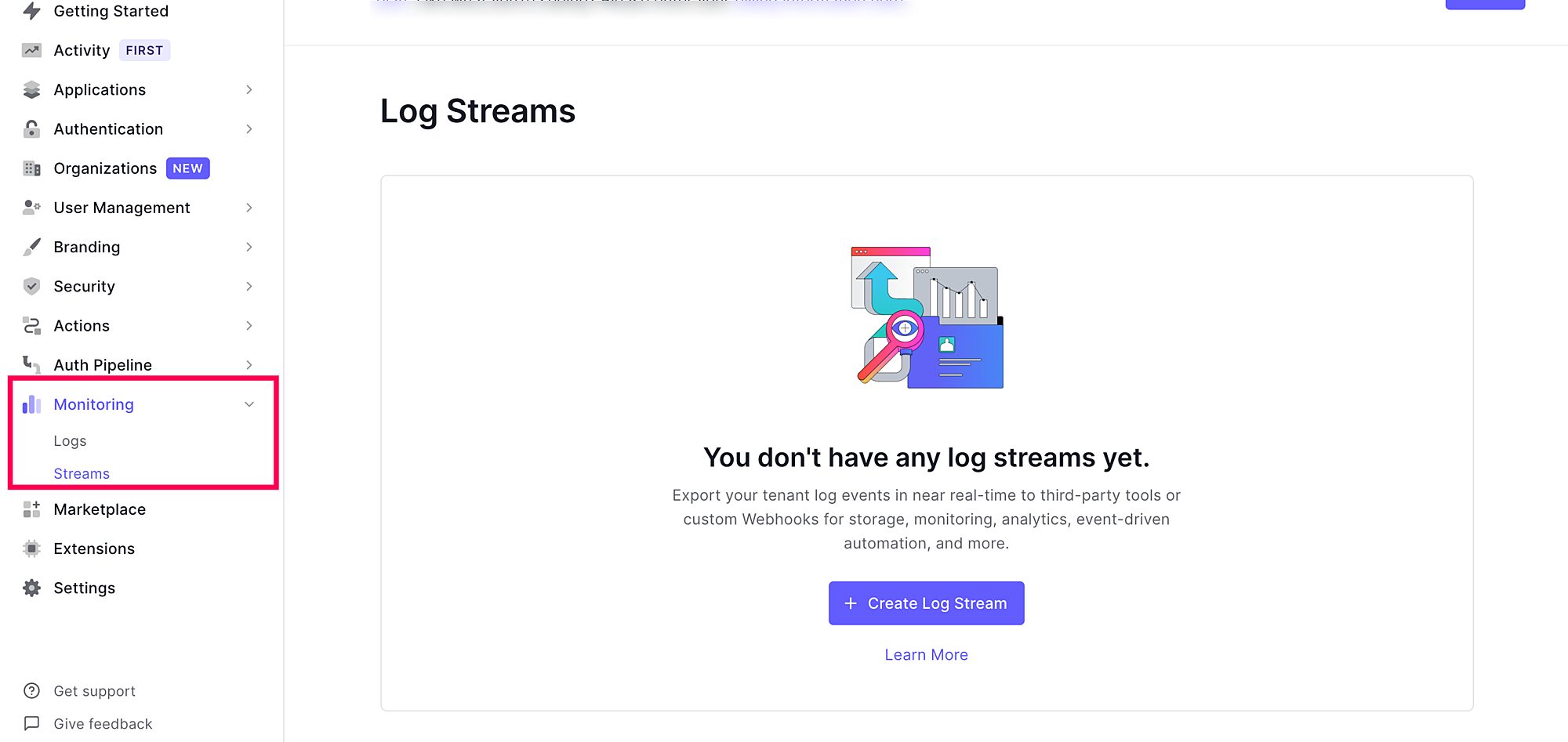 - Navigate to Monitoring > Streams.