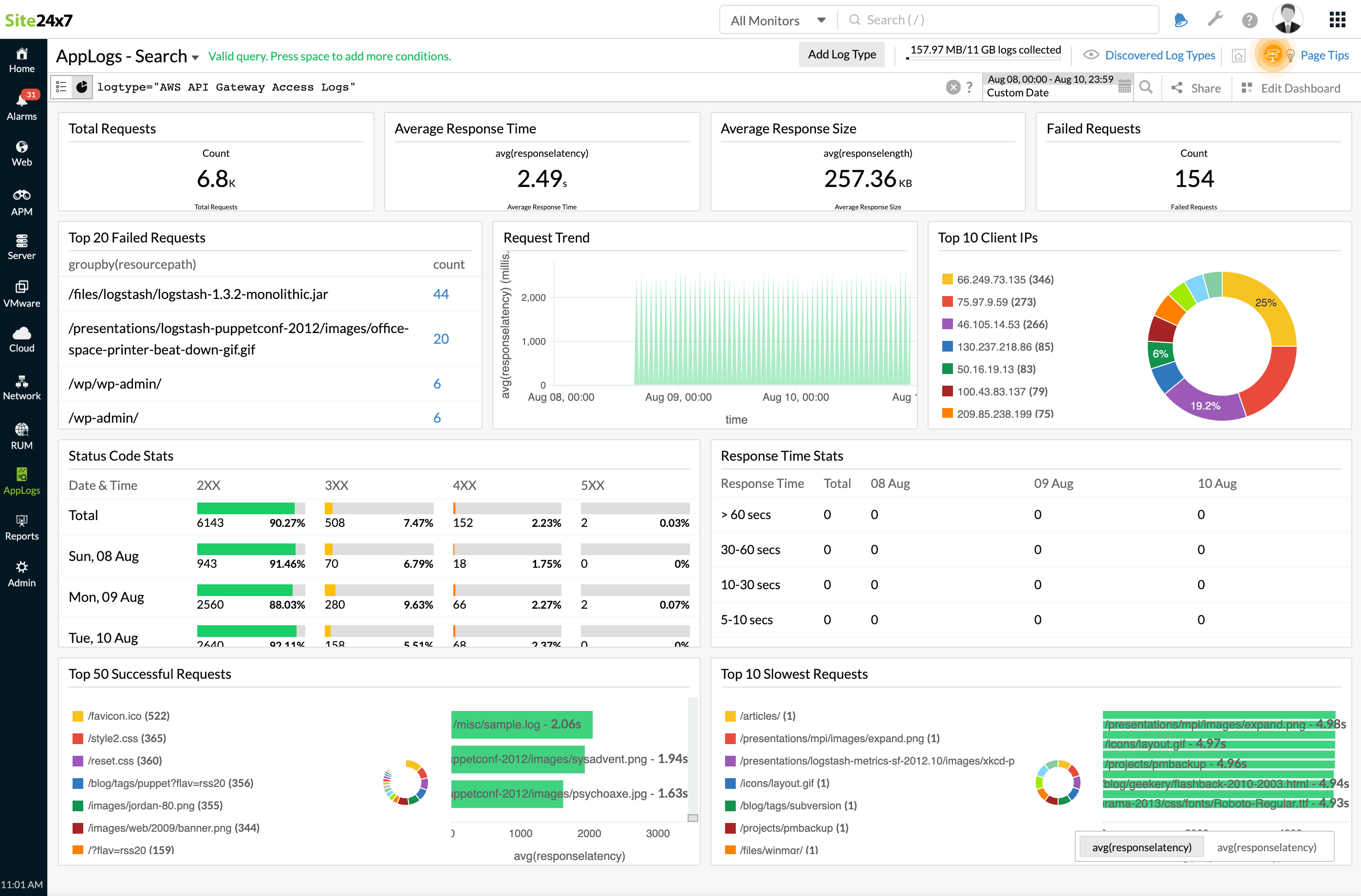 With Site24x7 AppLogs, you can collect, consolidate, track, and manage your AWS API Gateway access logs.