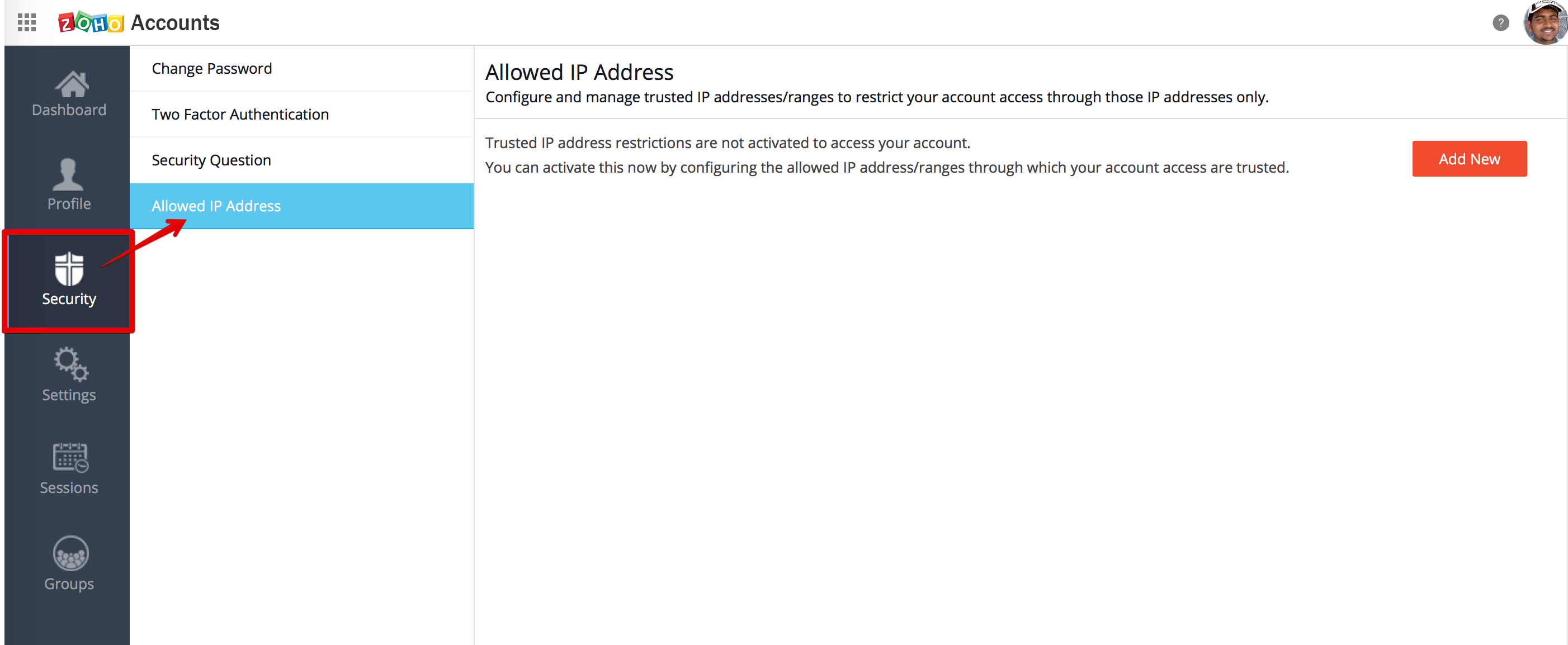 • Restrict IP Address: The Administrators can enable IP based restrictions for the organization users. This will enable additional security to the accounts and allow the login to the accounts only from the defined IP Ranges. The IP restricitons can be set at various levels and combinations. When IP restrictions are enabled for an account, and the user tries to login from a different IP Range, the user gets the following error message: "Access from this machine is denied."
