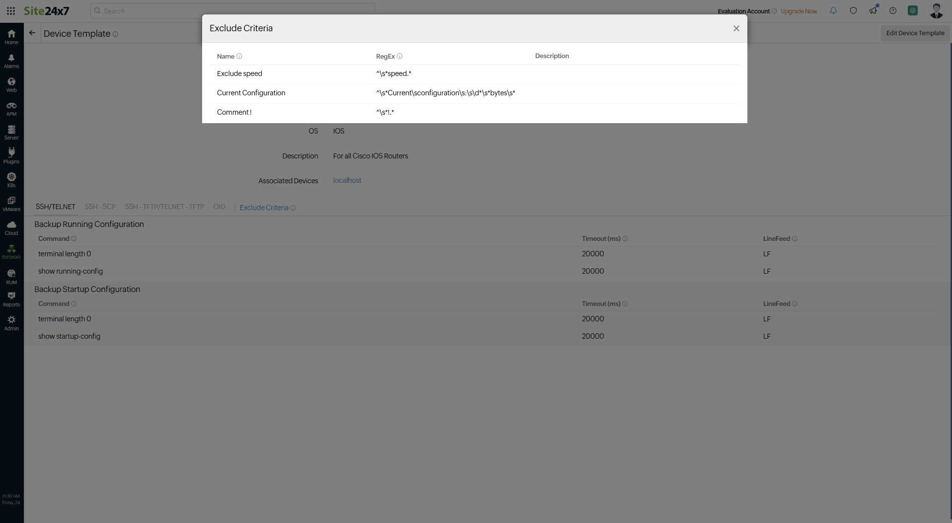 - Click Exclude Criteria on the Edit Device Template screen.