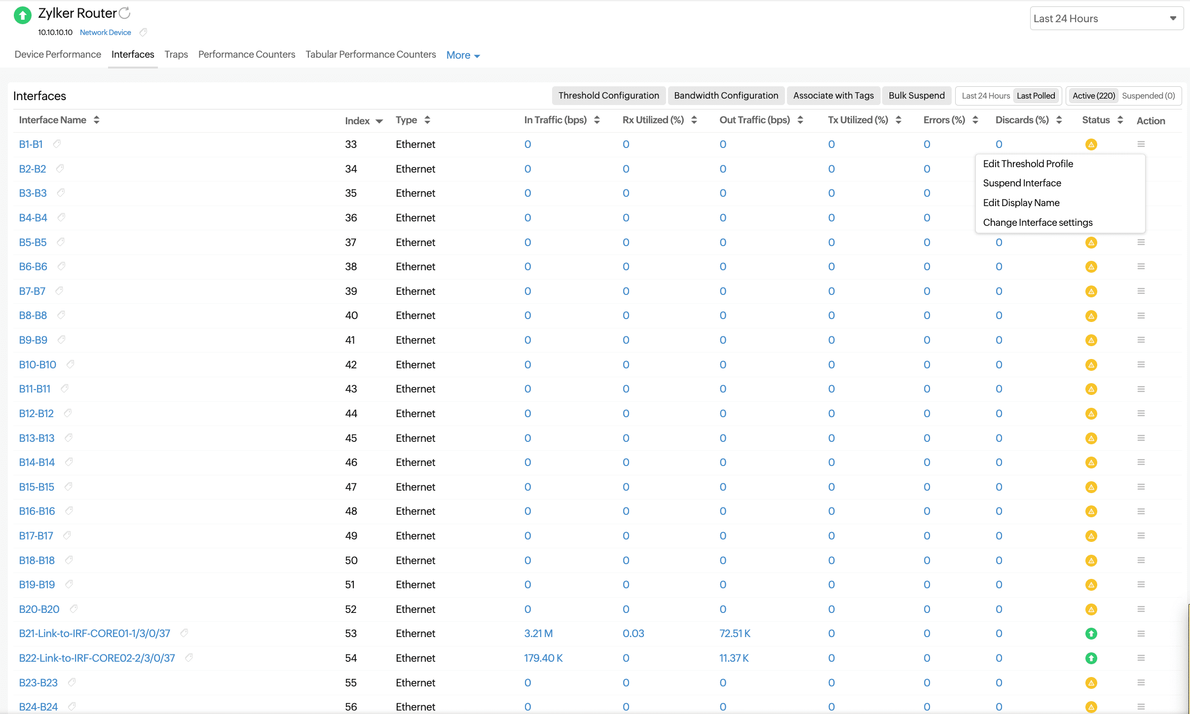 | Utilization | The average of the received and transmitted traffic utilized |
