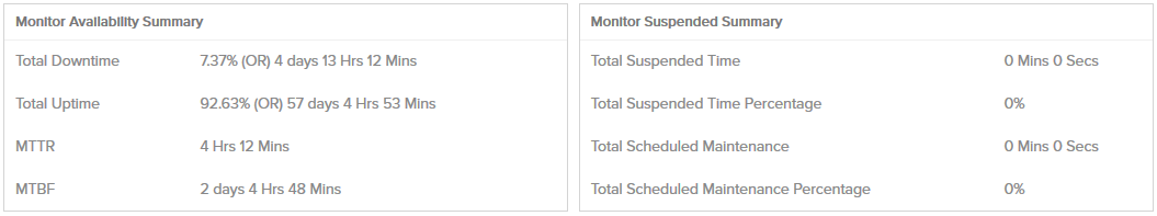 • Total Suspended Time: Any downtime captured due to unscheduled suspension of the monitor.