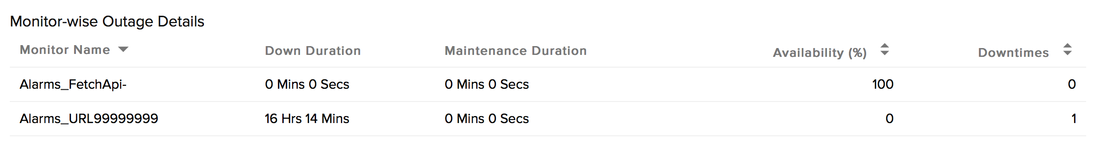 Detailed summary of downtime/uptime is presented in a tabular format. The detailed parameters are described here. Read this article to know more about all the variables and calculations involved.