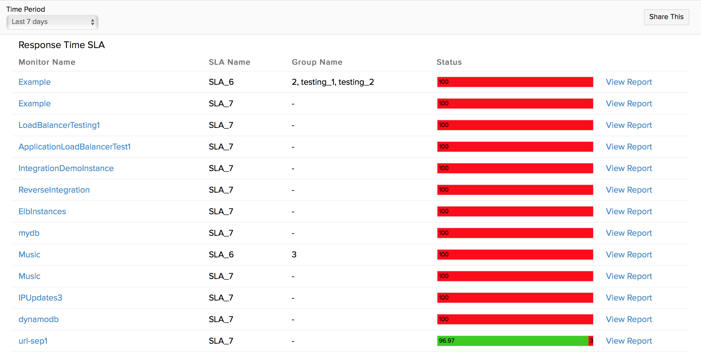 - Status: It highlights whether the monitor has achieved its Response Time SLA Goals or not. The achieved status is highlighted in green with the corresponding percentile value and the other part is presented in red color.