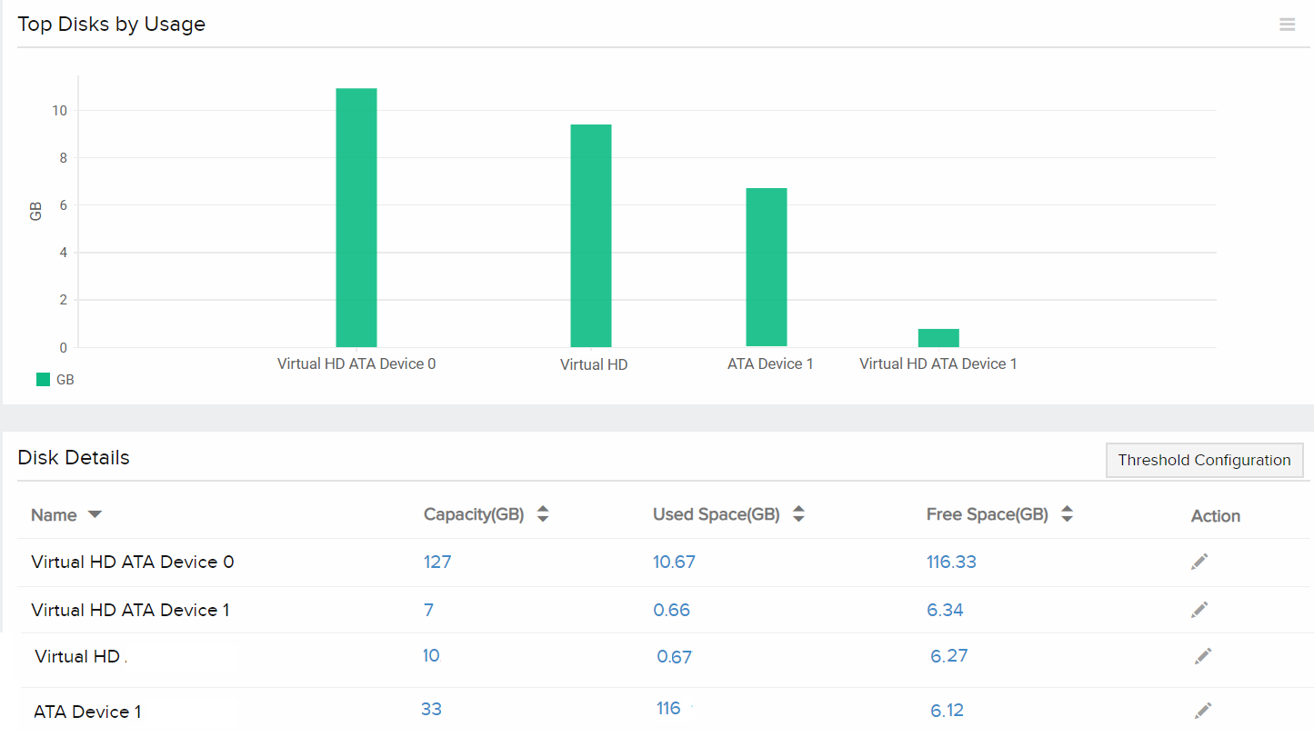 | Top Disks by Usage | The top 10 disks using up maximum disk space |